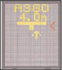 A flashing red arrow indicates the direction to turn. The vertical yellow arrow shows position in relation to the centre line. This indicator gives correct position and azimuth guidance.